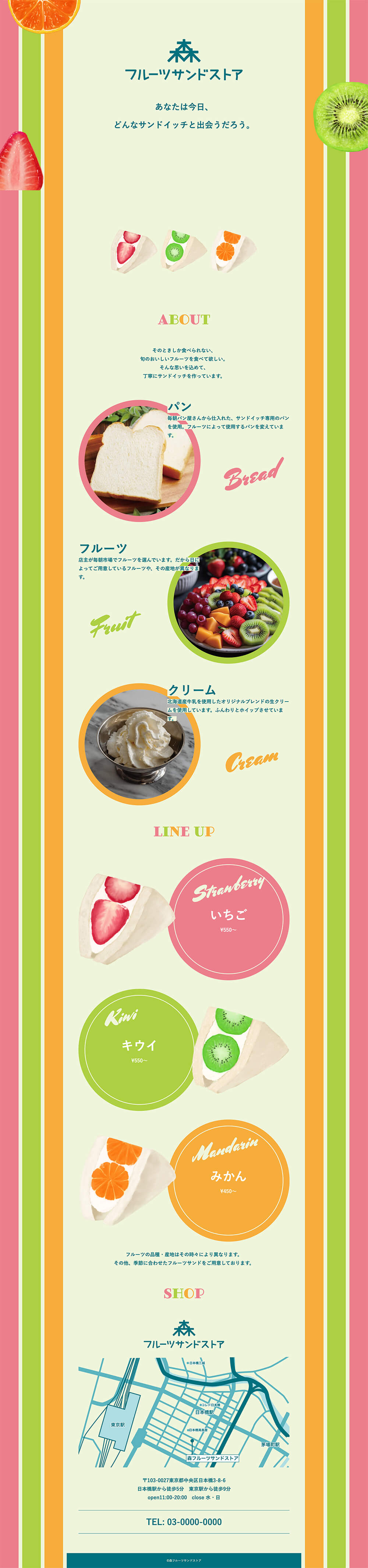 自主制作でフルーツサンドストアのサイトを制作しました。